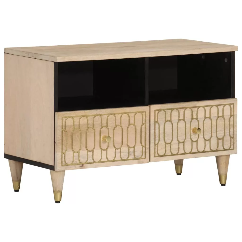 - Tömör mangófa: A tömör mangófa egy erős, trópusi keményfa, melyből strapabíró bútorok készíthetőek. A fa gyönyörű erezetének köszönhetően minden darab kissé különbözik a többitől. A tömör mangófából készült TV-állvány rendkívül tartós és stabil.