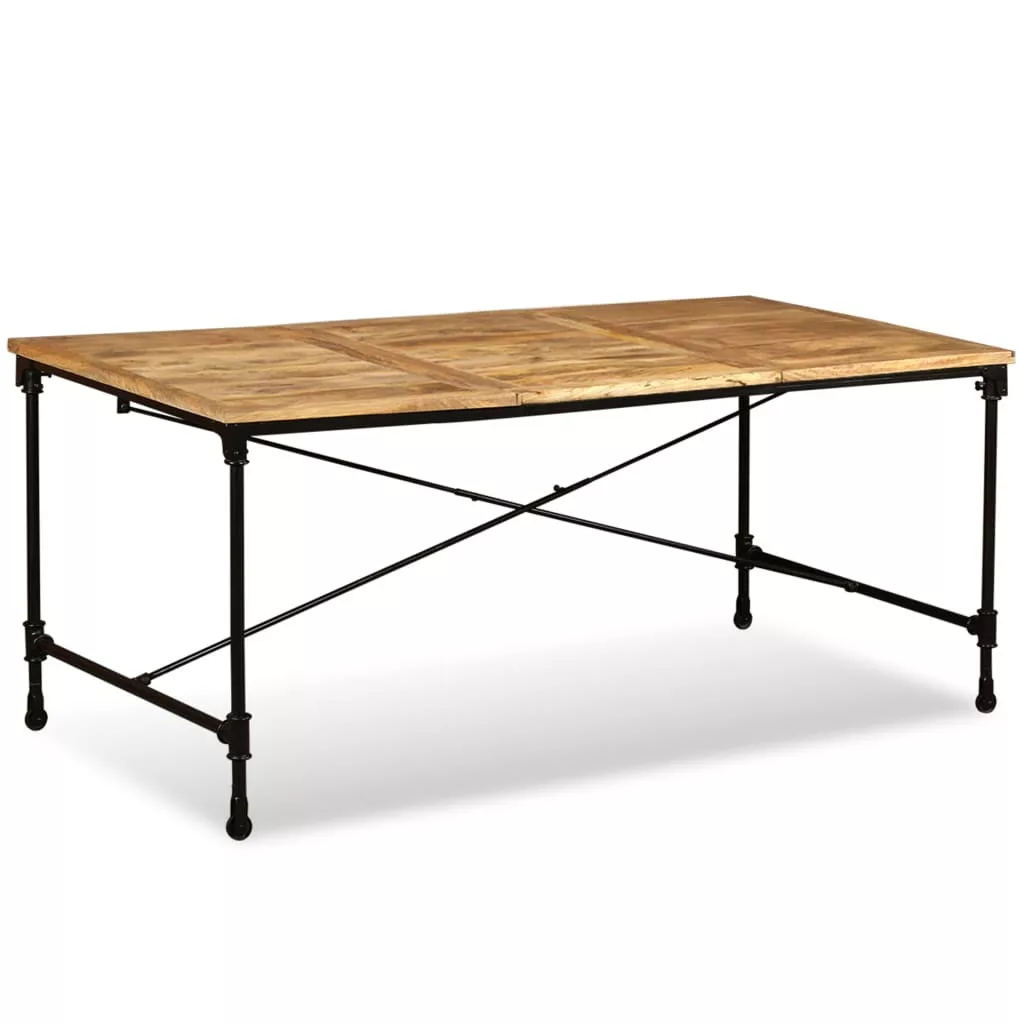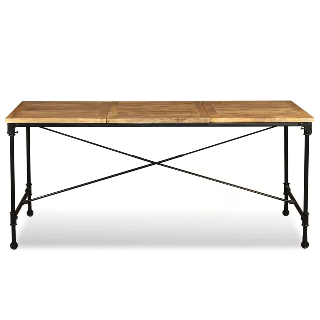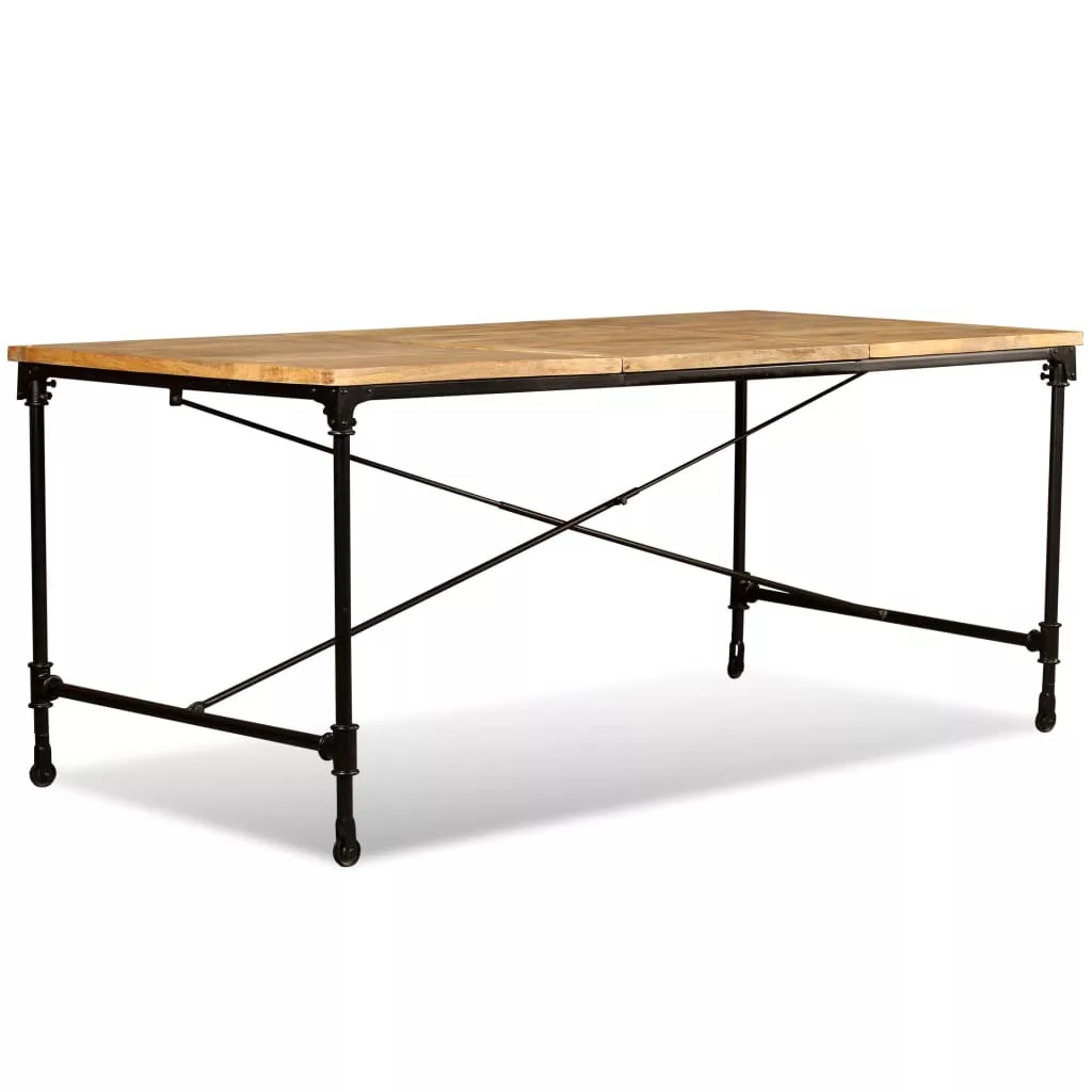 Ez az étkezőasztal tömör mangófából készült, mely stabil, strapabíró és gyönyörű, és a kézműves megmunkálásnak köszönheti retró megjelenését. Az acél lábak és az öntöttvas kerekek indusztriális hangulatot kölcsönöznek a bútornak, mely így ráadásul rendkívül könnyen mozgatható. Könnyen összeszerelhető.