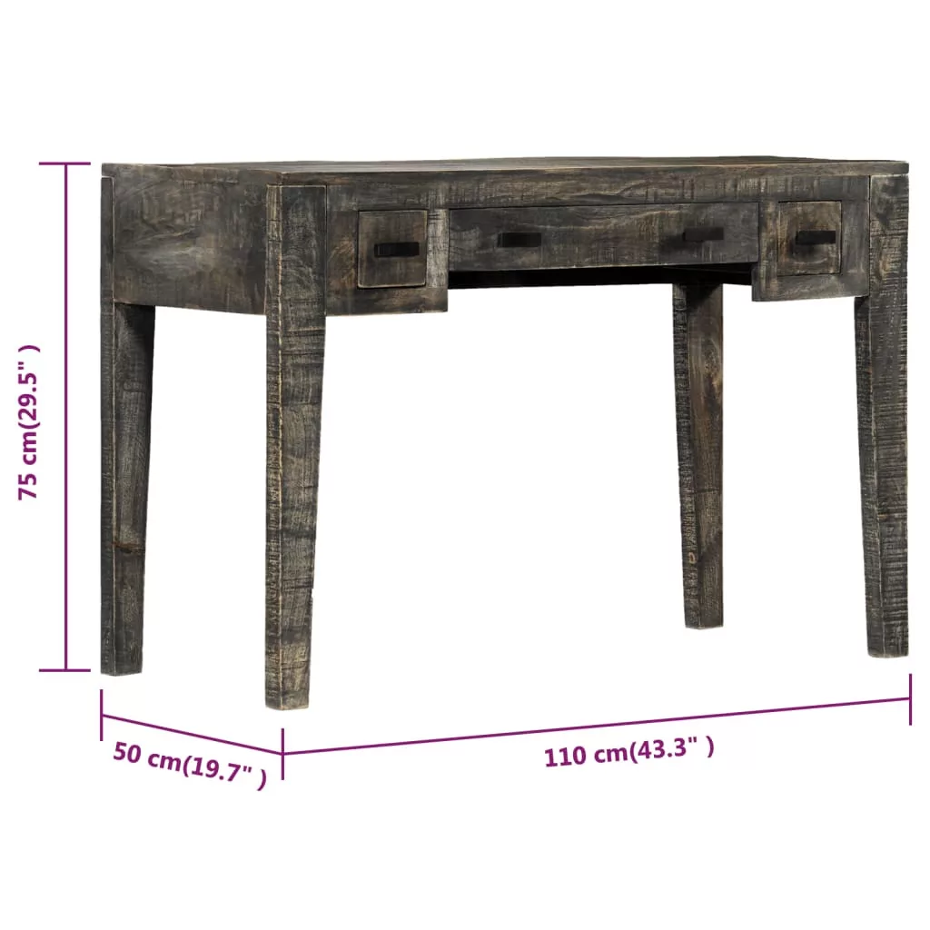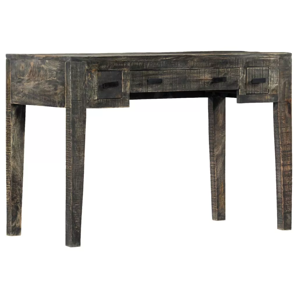 Ez a tömör mangófából készült íróasztal garantáltan szemet gyönyörködtető darabja lesz otthonának. Ez a vintage stílusú íróasztal tömör mangófából készült, így rendkívül stabil és tartós. A mangófa egy sűrű és robusztus keményfa, melynek felülete kifinomult barna vagy arany csíkokkal és kontúrokkal rendelkezik. A megmunkálás minden lépése a legnagyobb odafigyelés mellett történt, legyen szó akár a polírozásról, a festésről vagy a lakkozásról. Az asztallap szilárd és biztonságos felületet biztosít a könyvek, gyümölcsös kosarak, vázák vagy más dekoratív tárgyak számára. Három fogantyúval ellátott fiókkal lett felszerelve, melyek bőséges helyet biztosítanak apró tárgyak tárolására. Emellett, az íróasztal irodában vagy tanulószobában használható számítógépes asztalként, munkaasztalként vagy olvasóasztalként, és a nappaliban tálalószekrényként vagy konzolasztalként.