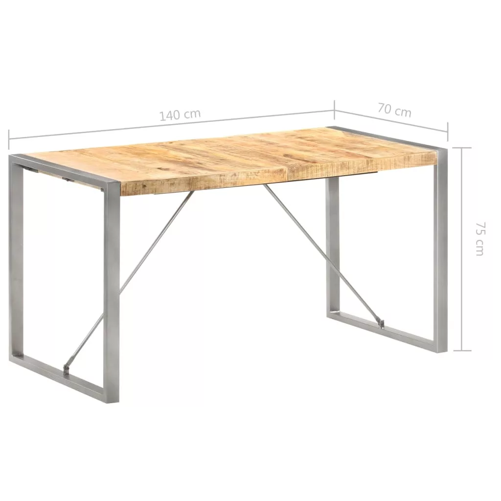 Ez az étkezőasztal tömör nyers mangófából, egy trópusi keményfából készült, amely nagy súlyt képes megtartani. Ellenáll a kopásnak is, így stabil és tartós. A porszórt acéllábak extra stabilitást biztosítanak az asztalnak.