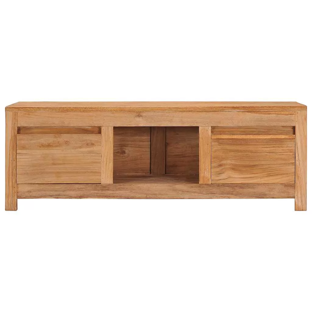 Ez a rusztikus TV-szekrény tömör tíkfából készült, amely erős és tartós alapot biztosít. A természetes olajos bevonat sima felületet biztosít, így nem karcolódik könnyen, illetve a karbantartása és rendszeres gondozása egyszerű. 2 nagy fiókkal rendelkezik az apróságok tárolására és 1 nyitott rekesszel a multimédiás készülékek, játékkonzolok, CD-k és magazinok stb. tárolására.