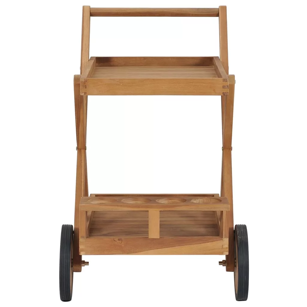 A strapabíró kemény tíkfából készült bútordarab természetesen, illetve kemencében volt szárítva, majd finomra lett csiszolva az elegáns megjelenés érdekében. A tíkfa rendkívül szilárd és időjárásálló, ezért sokkal alkalmasabb kerti bútornak, mint bármely más fa. Ha hosszú időn keresztül tartó kerti bútort szeretne vásárolni, a tíkfa a tökéletes választás. Ez a bájos kocsi bőséges tárolóhelyet biztosít az alsó és felső szintjével. Az alsó szinten található bortartóba boros- vagy egyéb üveget helyezhet. Kompakt kialakításának és mozgékonyságának köszönhetően zsúrkocsinkkal könnyű mozogni.