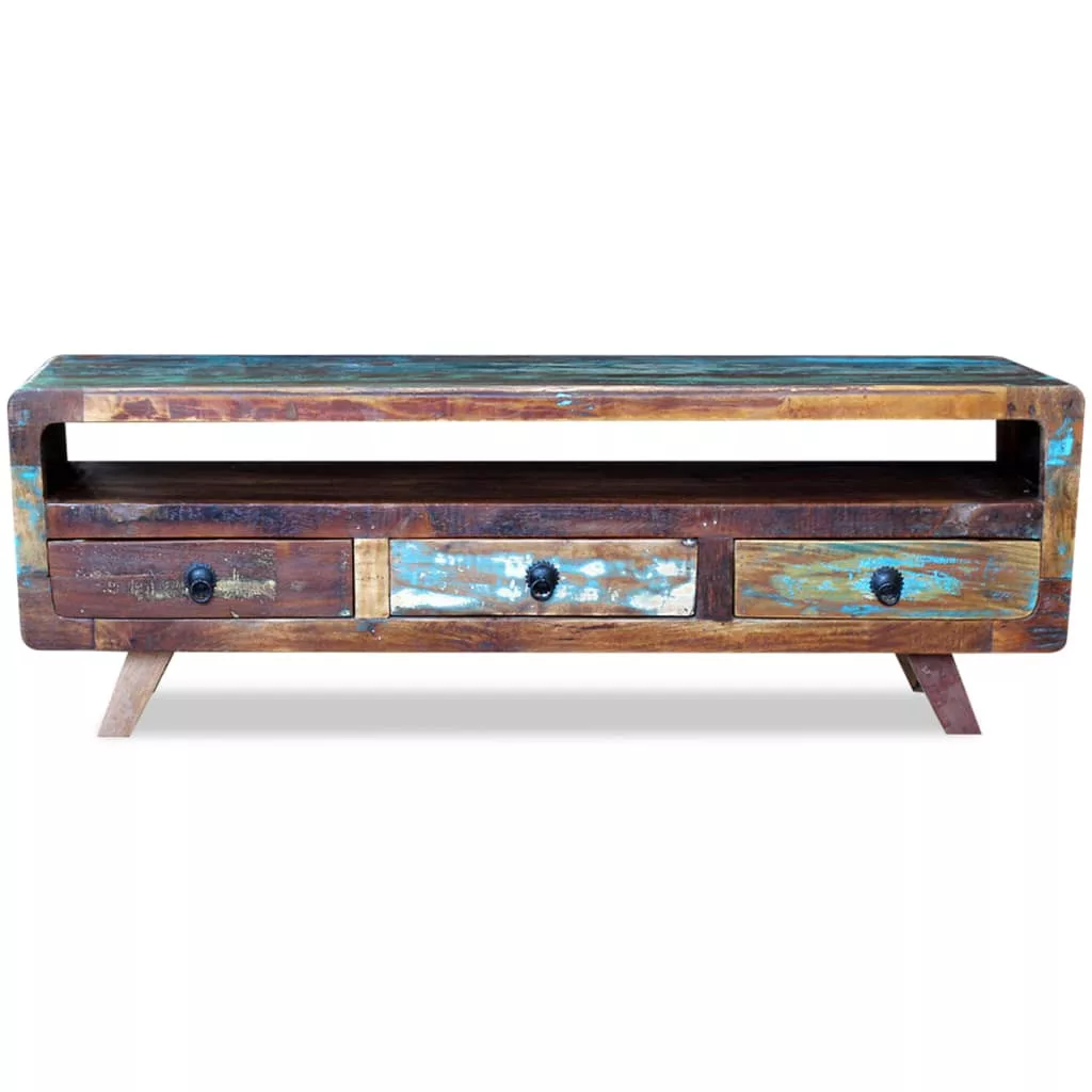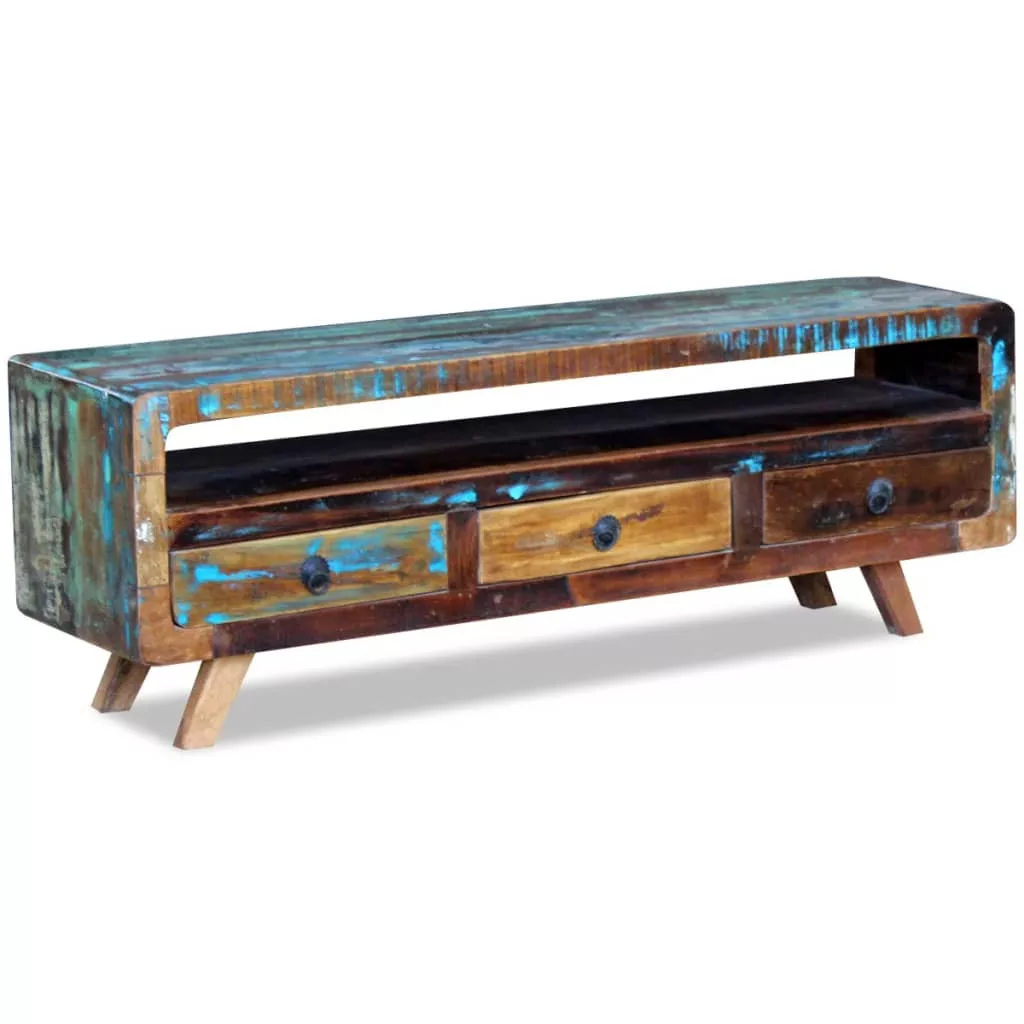 Ez a retro újrahasznosított TV szekrény használható pohárszékként, lowboardként, oldal szekrényként. A a fiókos szekrény egy különleges kiegészítést ad hozzá az Ön nappalijához. Az erezett és színbeli különbségek egyedivé teszik ezt a bútor darabot.