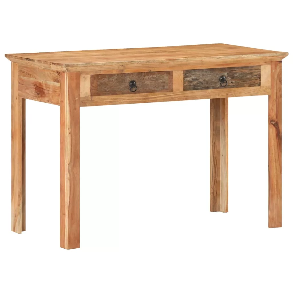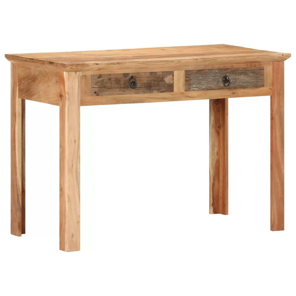 Az íróasztal kézzel készült tömör újrahasznosított fából, így minden bútor egyedi, és kissé különbözik a többitől. Az újrahasznosított fa szilárd, stabil, tartós és gyönyörű. A kopások és az erezet látható szerkezete minden darabnak saját történetet és egyedi megjelenését ad. A tömör akácfaváz extra stabilitást biztosít. Az asztal két fiókkal rendelkezik, így bőséges helyet biztosít holmija kézközelben történő rendezett tárolásához. Használható konzolasztalként, előszobaasztalként, kisasztalként stb. is.