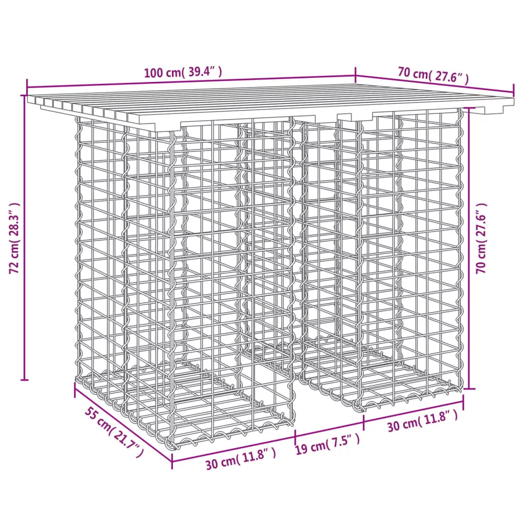 - Masszív és stabil alap: Ez a kültéri asztal horganyzott acél gabion kosártalppal rendelkezik, amelyet úgy terveztek, hogy kövekkel és kaviccsal töltsenek meg a további szépség érdekében. A gabionkosár hálós rácsát minden metszéspontban keresztirányú és hosszanti huzalokkal hegesztették a fokozott stabilitás érdekében.