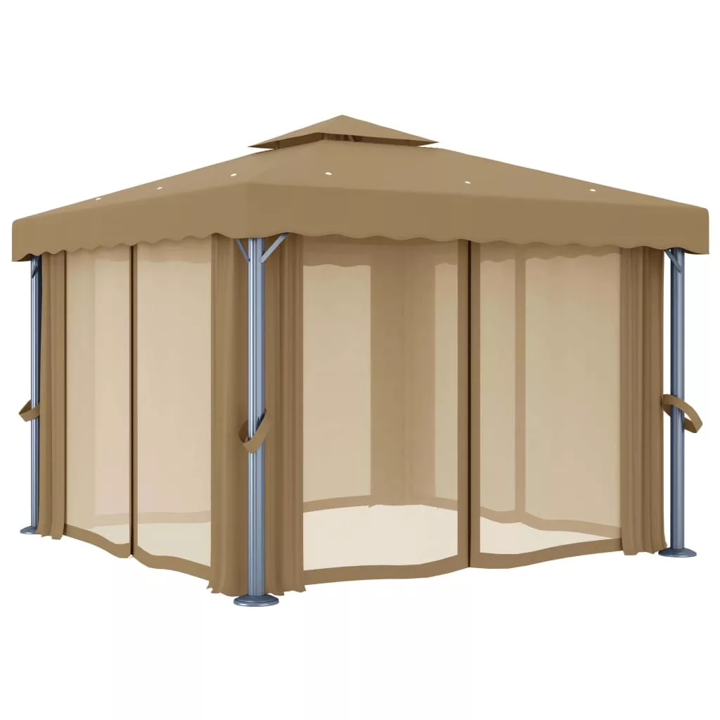 Dizájnjának köszönhetően hűvös, szellőztetett helyet fog biztosítani kültéri partik, piknikezések, grillezések és más családi összejövetelek alkalmával. Alumíniumoszloppal és porszórt acél tartócsővel rendelkezik, amely kiváló szilárdságot és tartósságot biztosít. A pavilon és az oldalfalak minőségi PA bevonattal ellátott, poliészter szövetből készültek, ami védelmet nyújt a káros napsugarakkal és enyhe esőzésekkel szemben. A kiváló tervezésű dupla tető megfelelő levegőkeringést biztosít. Ezenkívül a hozzátartozó függönyök és szúnyoghálók teljes körű védelmet nyújtanak, távol tartva a bosszantó szúnyogokat és más rovarokat. A hozzátartozó kampók és tépőzárak egyszerű rögzítést biztosítanak.