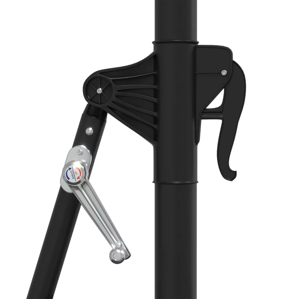 Az UV-védő és fakulásgátló poliészterből készült napernyőhuzat optimális védelmet nyújt a nap sugaraival szemben, és könnyen tisztítható. Különleges kialakításának köszönhetően a napernyő dönthető, így folyamatosan takarást biztosít a délután során a horizont felé ereszkedő nap elől. Az erős fém tartórúd és a 8 strapabíró borda rendkívüli stabilitást és szilárdságot biztosít a napernyőnek. A kerti ernyőt könnyű kinyitni és összecsukni a hajtókar mechanizmus miatt. A termék könnyen összeszerelhető. A szállítmány minden szerelési tartozékot tartalmaz.