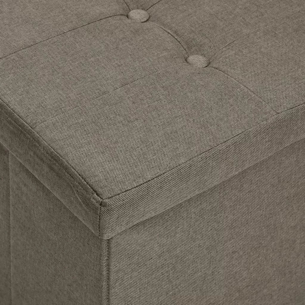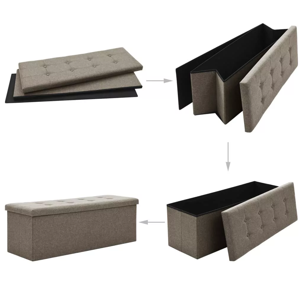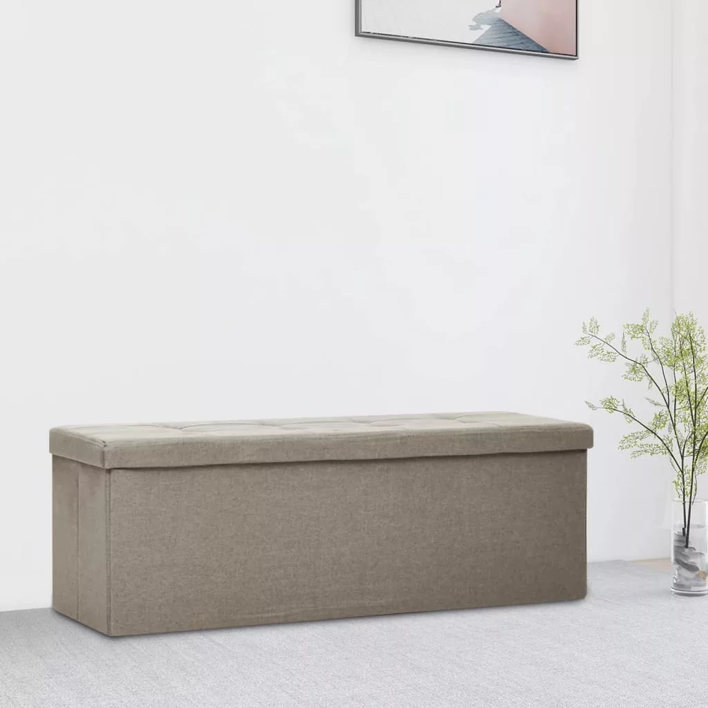 Ez az előszobai pad MDF-ből készült és művászon kárpitozást kapott, így igazán tartós és stabil. A habszivaccsal töltött tárolódoboz kényelmes ülőhelyet biztosít. A pad bőséges helyet kínál különféle kellékek kézközelben való tárolására. Ráadásul a doboz a helytakarékosság érdekében összecsukható, ha éppen nincs használatban.
