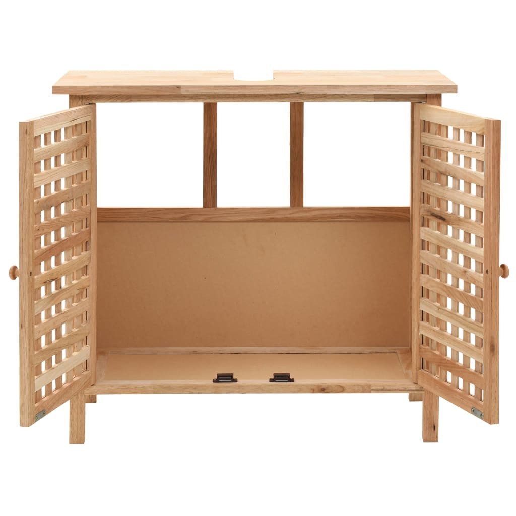 A tömör diófából és furnérlemezből készült tükrös mosdószekrény erős és tartós. A fürdőszobai szekrény két rácsos ajtóval rendelkezik, amelyek így lehetővé teszik a szekrényben tárolt tárgyak szellőzését. A szekrényben található nagy tárolórekesz és polc bőséges helyet kínálnak törölközők és higiéniai termékek tárolásához. A tükör egy lécezett polccal lett ellátva, ahová kisebb tárgyakat, például fogkeféket, kozmetikumokat stb. tehet.