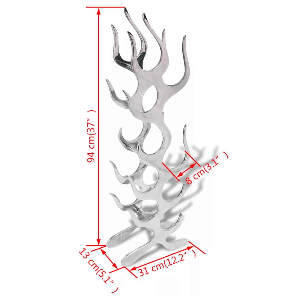 Ez a bortartó állvány 9 palack bor tárolására alkalmas. Egyedi tűzláng formája modern eleganciát csen életterébe. Borkedvelő barátok és ismerősök számára nagyszerű ajándék. Kiváló minőségű alumíniumból készült, melynek felülete le lett csiszolva, így különösen strapabíró!