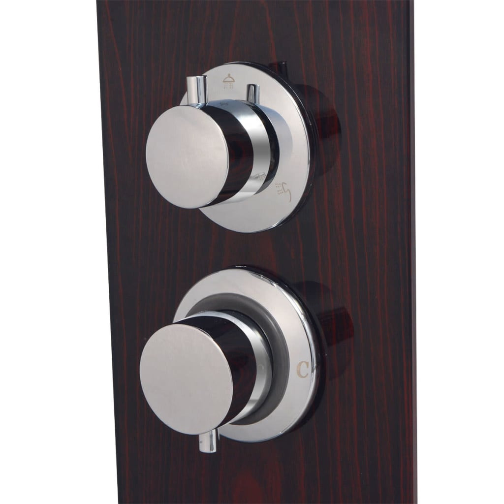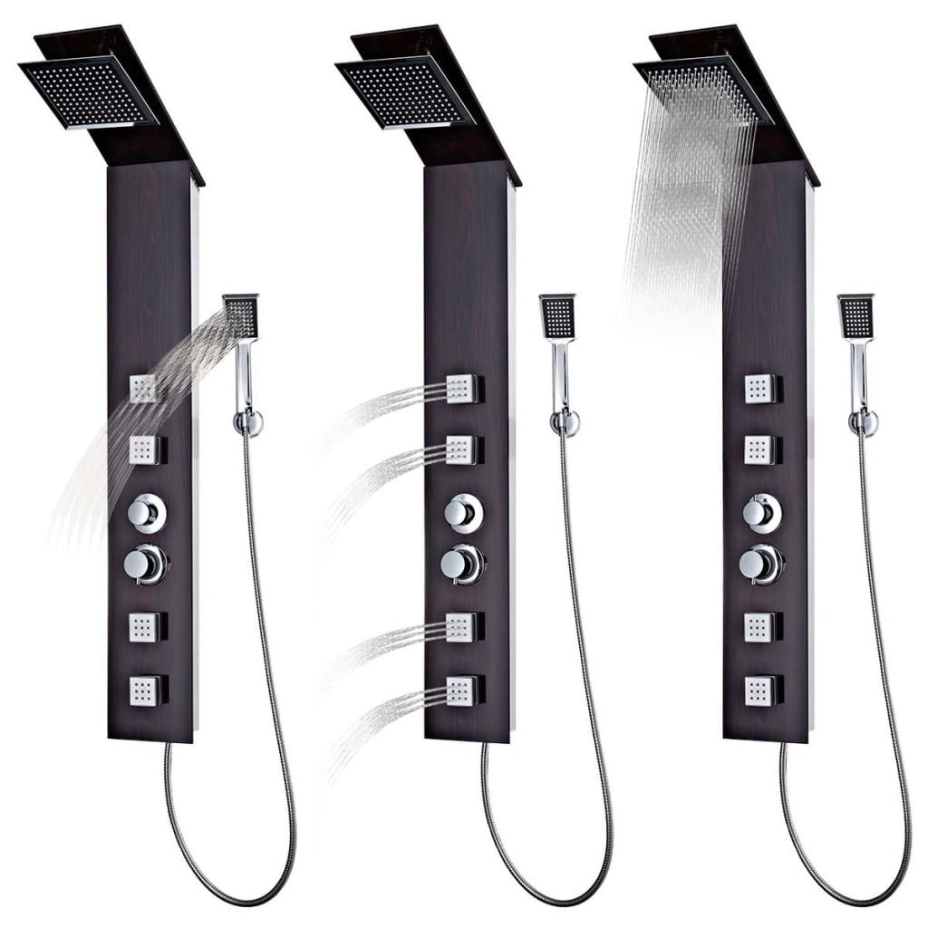 Ez a zuhanytorony kiváló minőségű, famintázatú üvegből készült és 3 funkcióval ellátott: esőztető, masszázs és kézi tusolófej, melyek könnyedén kiválaszthatóak a forgatható gomb segítségével.