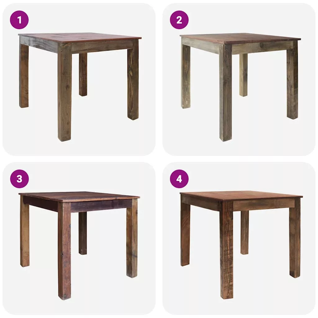 Ez az étkezőasztal újrahasznosított fából készült, amely különböző fák, mint pl. mahagóni, tíkfa, mangófa, akácfa és egyéb fafajták karaktereit viseli magán. Minden egyes bútordarab egyedi és enyhén eltér a többitől. A kopottság látványa nosztalgikus megjelenést kölcsönöz és tovább növeli egyediségét. Mivel újrahasznosított fából készült, a termék kisebb tökéletlenségeket felmutat, amelyek autentikus értékéről és gazdag történelméről tanúskodnak. A fa természetes módon kidőlt fákból, csónakokból, faházakból és egyéb forrásokból származik.