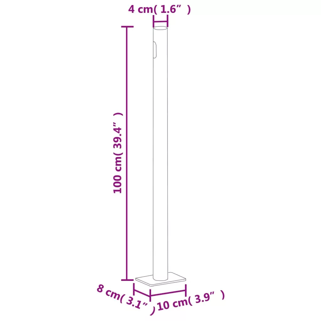 UV-álló és szakadásálló poliészterből készült, így rendkívül strapabíró. A kazetta függőlegesen lett rögzítve egy fa cölöphöz, a visszahúzható árnyékoló pedig egyenesen húzható ki. A válaszfal szélessége 300 cm-ig állítható. Az ellenző automata visszahúzó funkcióval is el lett látva.