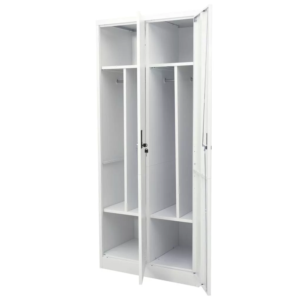 Ez a szekrény acélból készült, így tartós és könnyen tisztítható. 2 polccal és 2 zárral rendelkezik. A ruhásszekrény nagy rekeszei bőséges tárolóhelyet biztosítanak mind a hosszabb ruhák, mind az egyéb összehajtogatott ruhák vagy kiegészítők, például pulóverek, farmerek, kalapok, kézitáskák stb. számára.