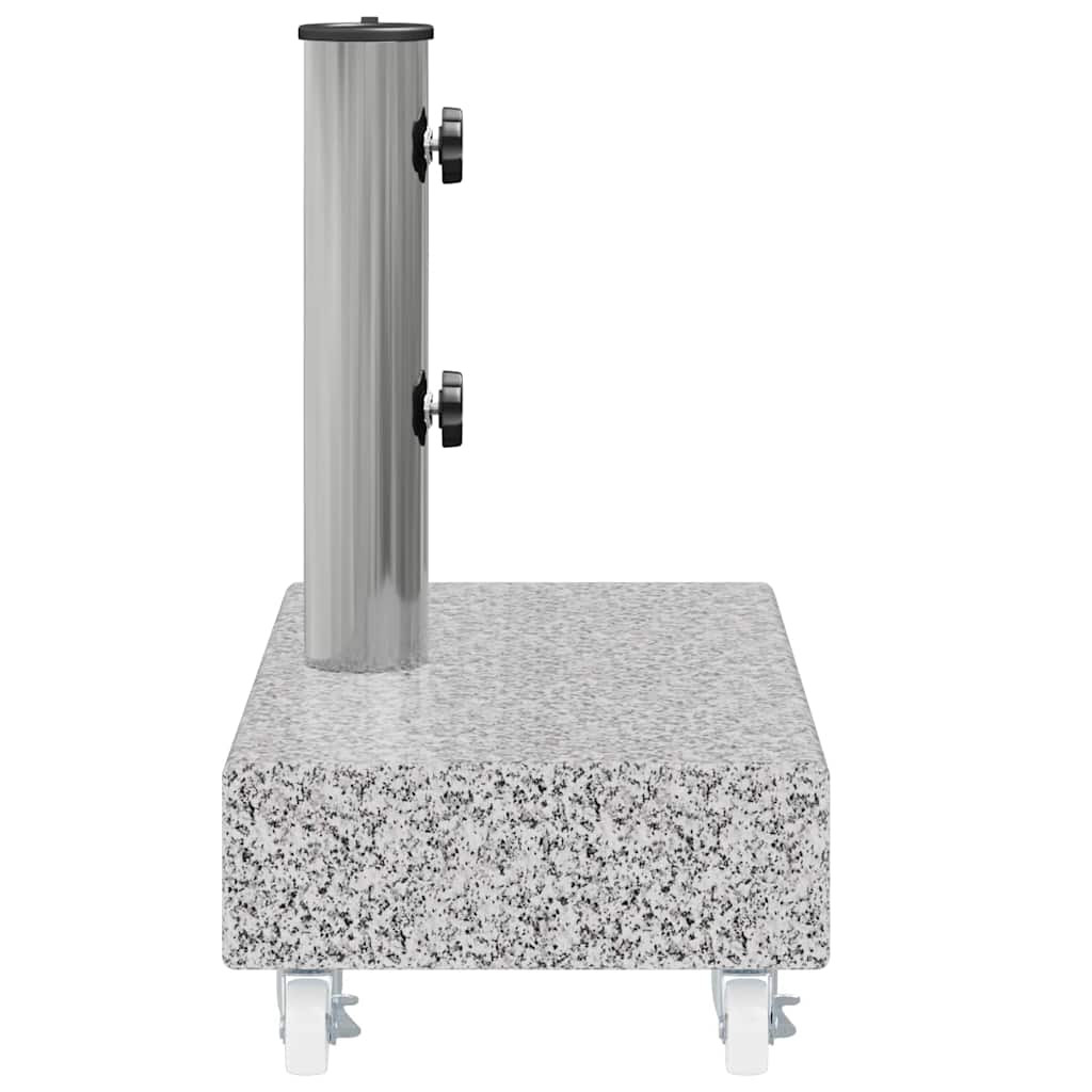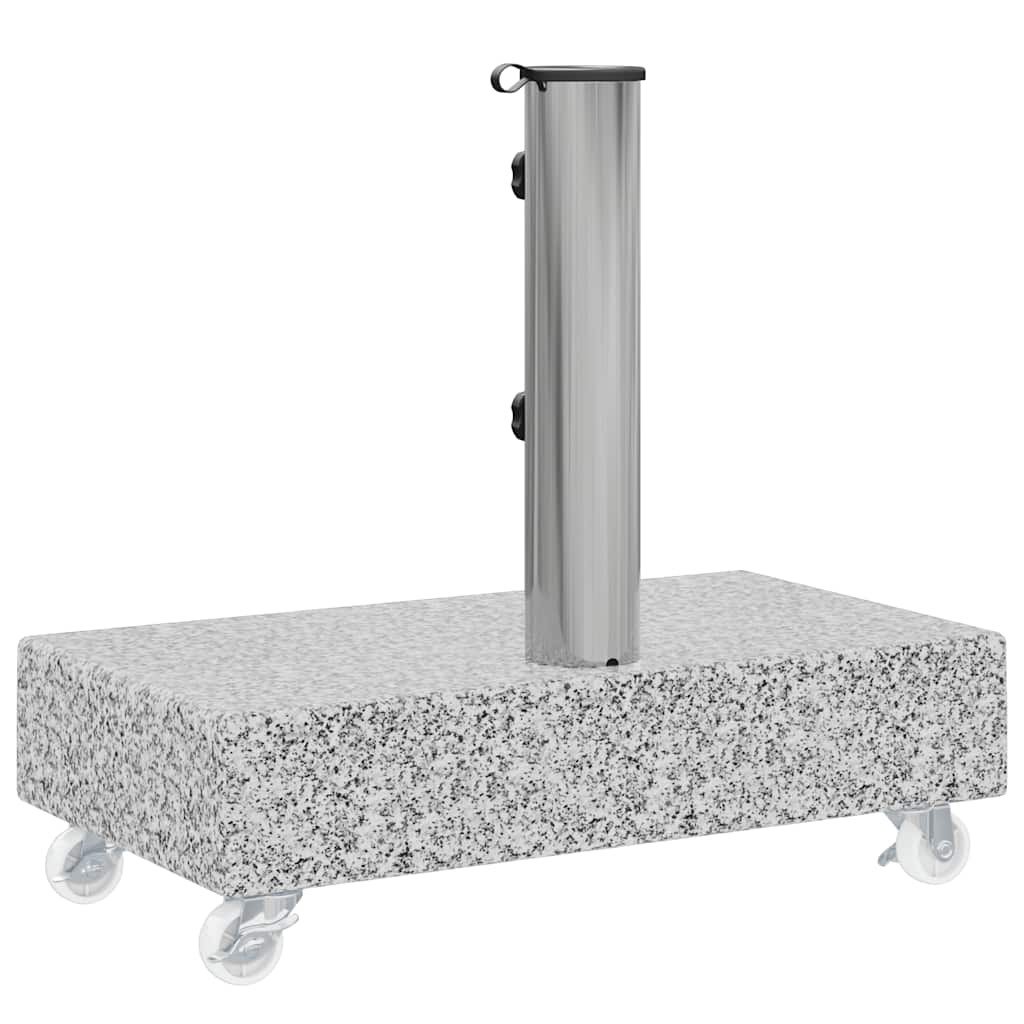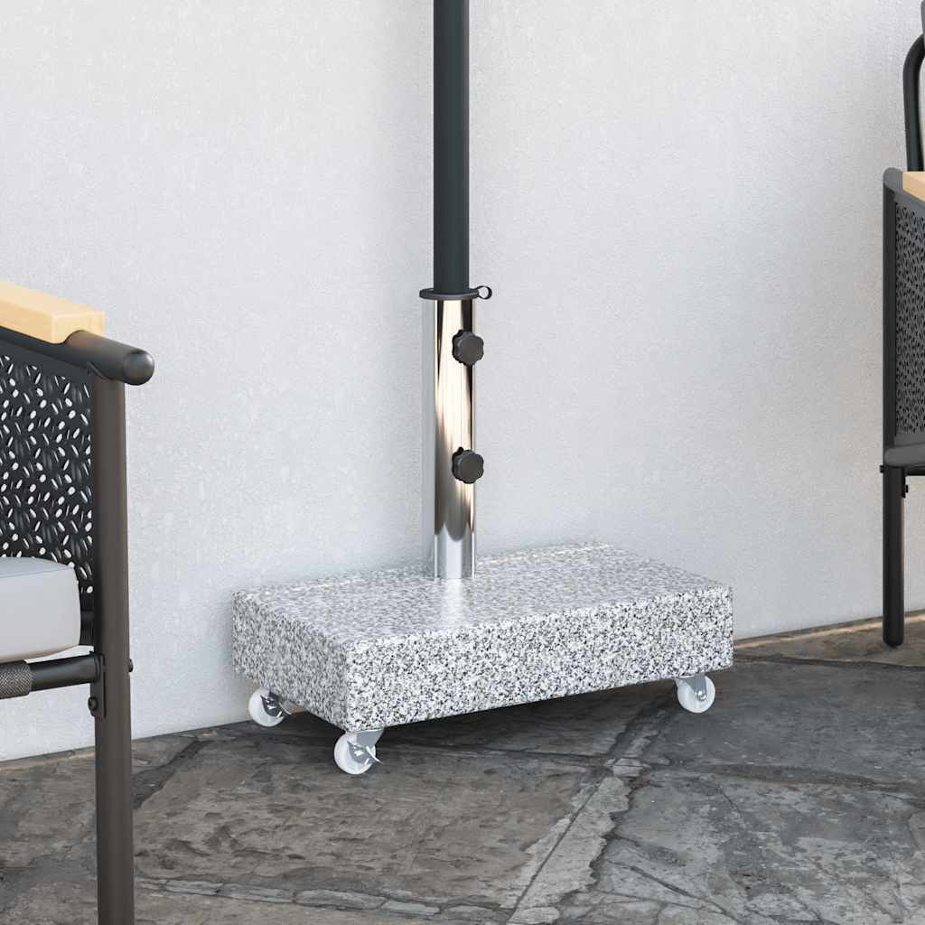 A napernyőtartó tartós gránit konstrukcióval rendelkezik, amely tetemes súlyának köszönhetően nagyon stabil. A gránit és kifinomult megjelenést kölcsönöz a napernyőtalpnak, mely egy csipetnyi eleganciát csempész külterébe, és remekül kiegészíti fényűző kerti bútorgarnitúráját. A cső rozsdamentes acélból készült. A kerekek megkönnyítik a tartó mozgatását.