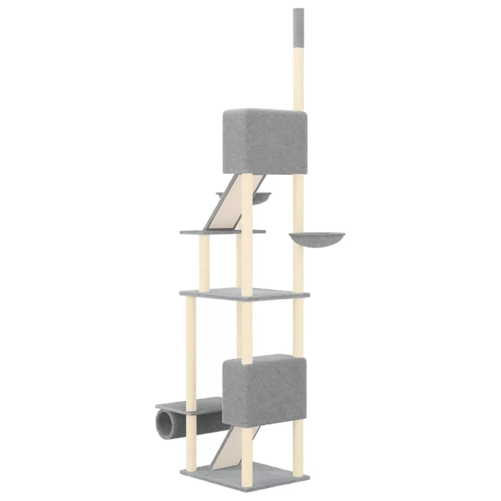 - Praktikus kialakítás: Az állítható oszloppal ellátott macskajátszóközpont a mennyezetre rögzíthető, magassága pedig 277 és 303 cm között állítható.