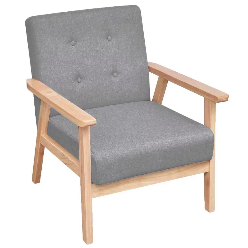Ez a retró karosszék lakhelye nagyszerű, dekoratív kiegészítője lehet. Masszív fa vázzal rendelkezik, a kényelemnövelése érdekében pedig vastag habszivacs párnázással ellátott, puha, kényelmes szövetkárpitot kapott.