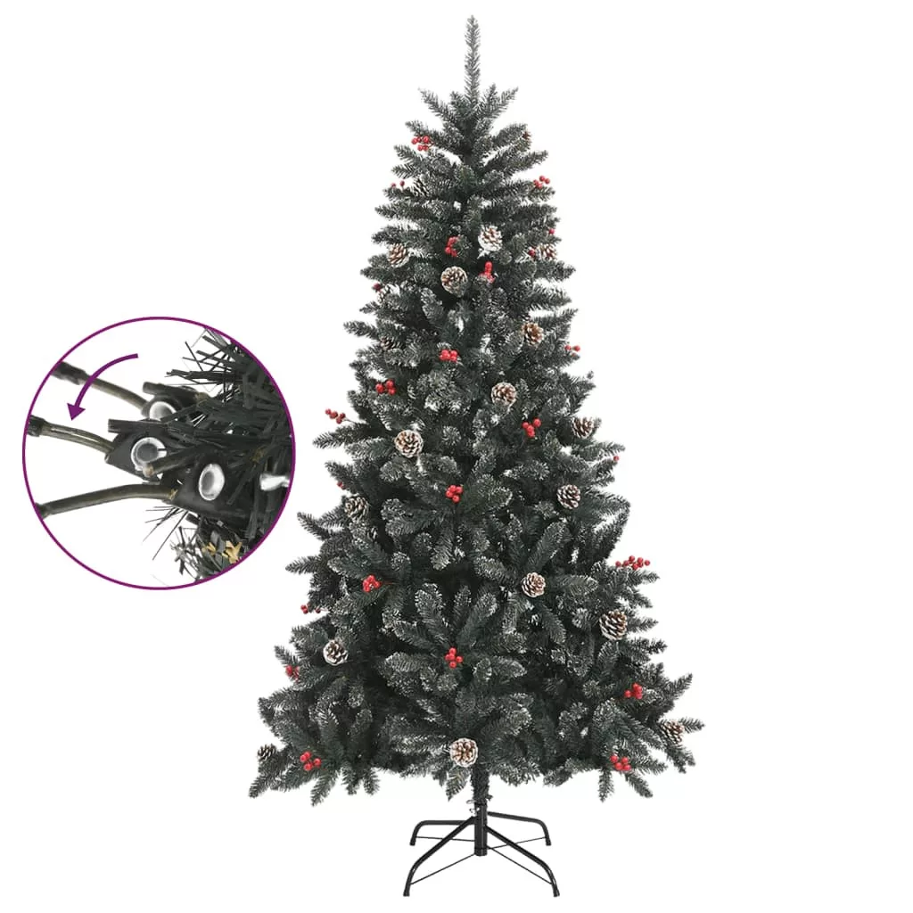 - Gyönyörű dekoráció: A karácsonyfán tobozok és bogyók találhatók, amelyek gyönyörű és természetes hatást keltenek. Fehér műhóval és csillámokkal van díszítve, így egyedi téli hangulatot teremt.