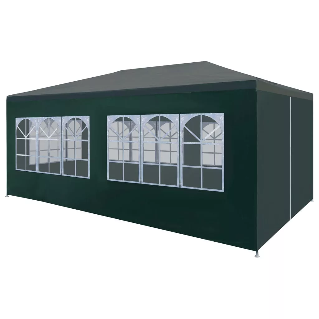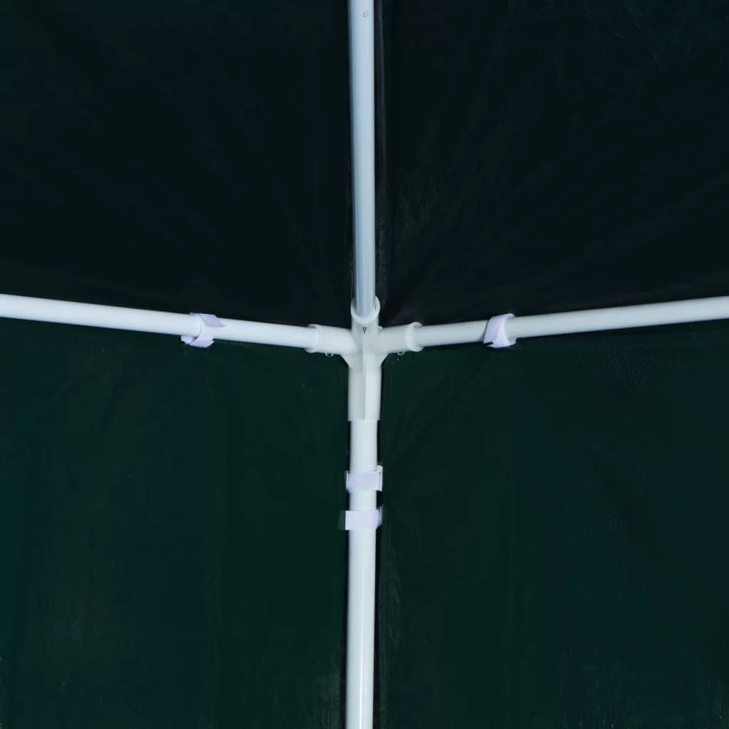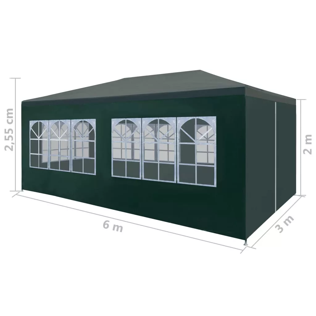A kerti sátor UV- és vízálló polietilén anyagból készült, ezért nagyon praktikus kültéri használatra. A váz rozsdaálló acélból készült, így a kültéri ponyva stabil és tartós. A partisátor oldalsó panelekkel rendelkezik, mindegyik dekoratív ablakokkal, és 1 ajtópanellel, cipzárral a könnyű bejutás érdekében. A kerti pavilon könnyen összeszerelhető.