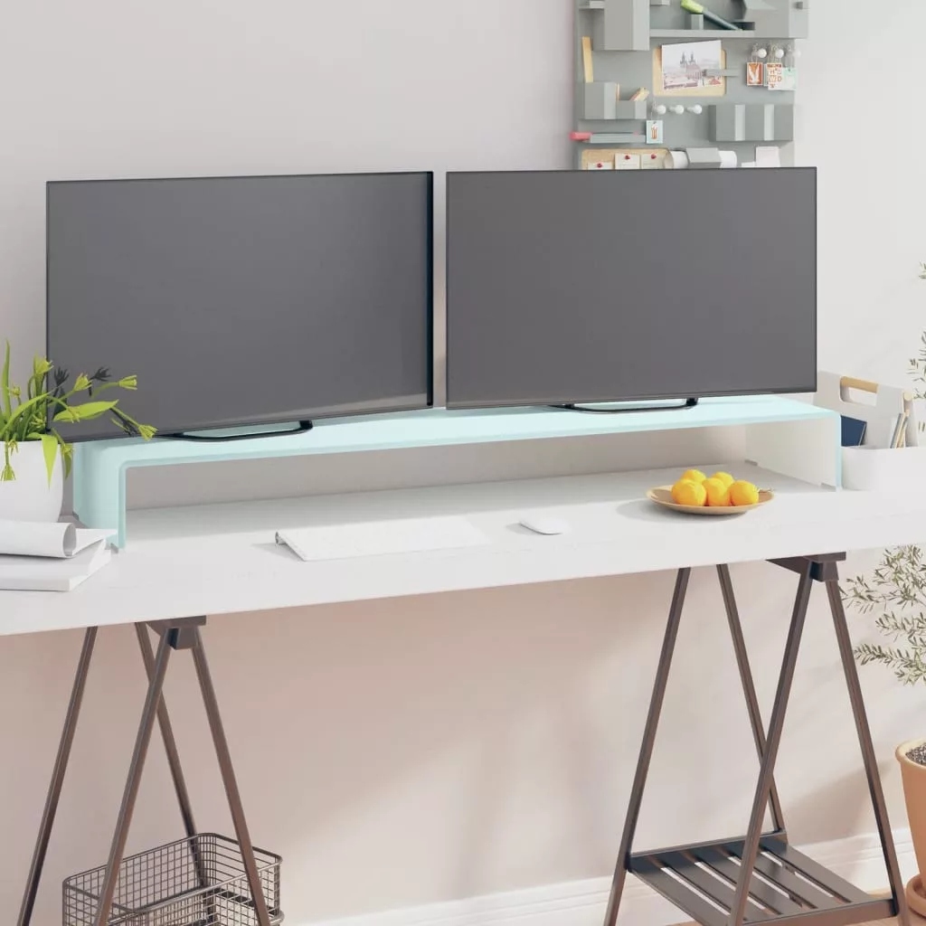 Ez az üvegpolc TV-állványként vagy magasítóként használható asztali monitorhoz, televízióhoz, laptophoz és egyéb multimédiás eszközhöz. A monitort magasító üvegpolcnak köszönhetően kényelmesen ülve jobban ráláthat a képernyőre, ami segít csökkenteni a nyak vagy a hát terhelését és kényelmetlenségét. Az alatta lévő térben DVD-lejátszó, játékkonzol, streaming eszköz, vevőkészülék és médiahordozó helyezhető el.