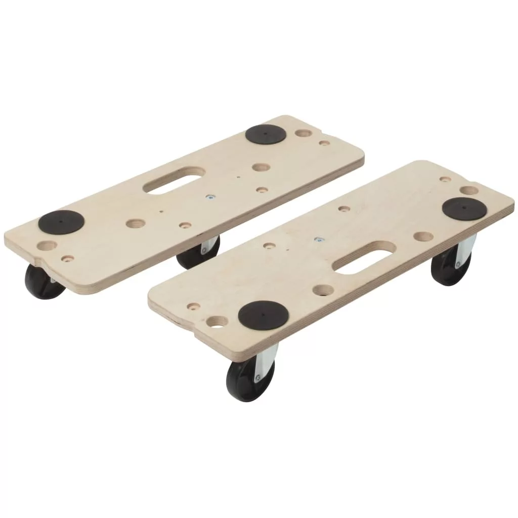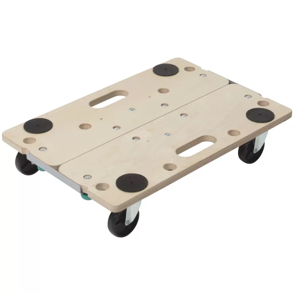 Ez a remek kiskocsi minőségi és tartós nyírfa furnérlemezből készült, és hat darab 360°-ban forgatható 75 mm átmérőjű kerékkel van felszerelve. A furnérlemez vízálló ragasztóval vannak összeragasztva, a kerekek pedig golyóscsapágyra vannak szerelve a könnyed és rugalmas fordulás érdekében, ráadásul négy csúszásgátló alátét segíti, hogy a rakomány biztosan a helyén maradjon.