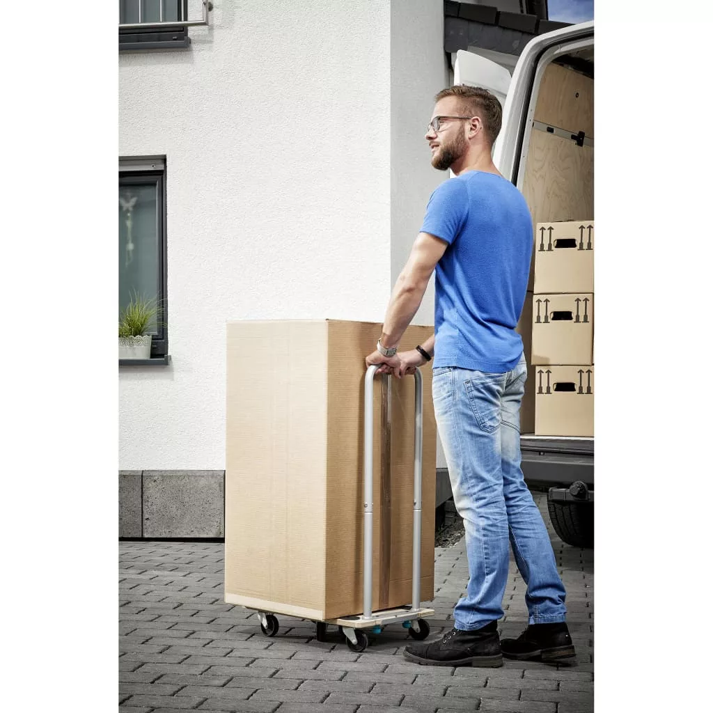 Ez azonban nem minden, hiszen ez a praktikus kerekes kocsi kényelmes fémfogantyúval és két fékkel van ellátva, valamint három különálló részre osztható, 5 funkciót kínálva egyetlen termékben! A három szekció egy kompakt felületet alkot, amely maximum 300 kg-os teherbírást kínál. Az osztott opció esetében a szekciók teljesen el vannak választva egymástól, amely ideális hosszú tárgyak számára, mint például kanapék, és 200 kg-ig terjedő teherbírást kínál. (Felhívjuk figyelmét, hogy a rakományt osztott opció esetén szíjakkal kell biztosítani.) A szekciók továbbá V-alakban is használhatók, ha nagyobb felületre van szüksége, 200 kg-ig terjedő tárgyak esetén. A fogantyú segítségével egy lapos kocsivá alakítható 150 kg-ig terjedő hosszú deszkák vagy bútordarabok számára,